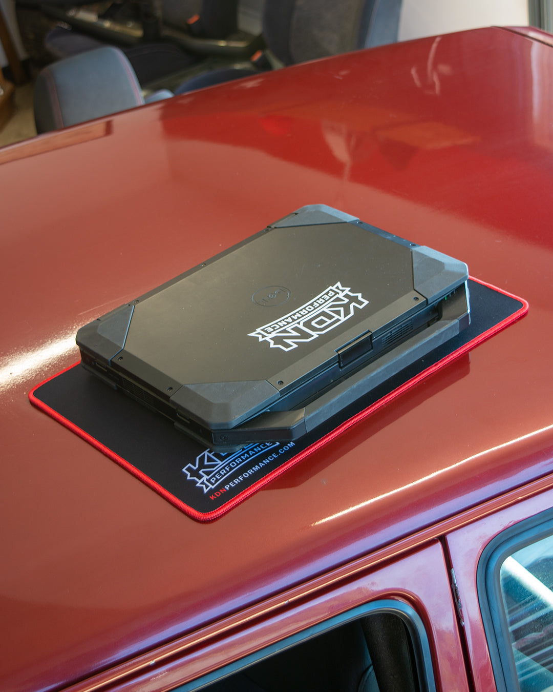 ¡El nuevo tapete de sintonización KDN! Fabricada en neopreno con agarre debajo, esta alfombrilla será el accesorio perfecto para cualquiera que utilice un ordenador portátil para ajustar su coche en la pista. Con una superficie de 12" x 18", cabe incluso los portátiles más grandes, ¡con un teléfono móvil al lado!