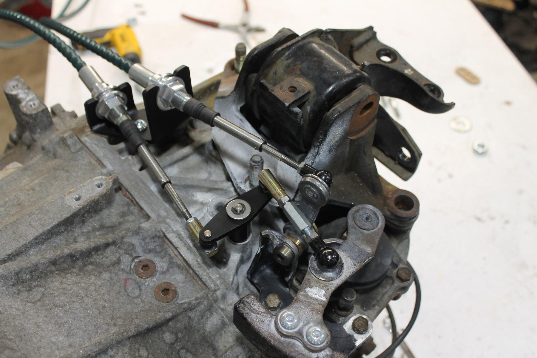Each kit includes a mounting plate that bolts into the factory location, making it a true bolt-in shifter kit. The cables are upgraded to larger diameter cables for a better feel, and more accurate shifting.